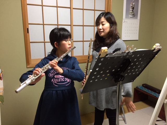 *小さいお子さんや小学生低学年の方でフルートをやりたい方は、背が低くて手がまだ届かなかったり、肺がまだきちんと出来あがっていないのでフルートを吹くのが困難だったりします。お試しレッスンの時にお子さん・親御さんとはよくご相談させてもらいますが、ある程度背が大きくなるまで私はオカリナから始めて頂き楽器を吹くことに慣れていく事をお勧めしております。どうしてもフルートをやりたいというお子さんには手が届くU字管のフルートがありますので、そちらを使っていきます。